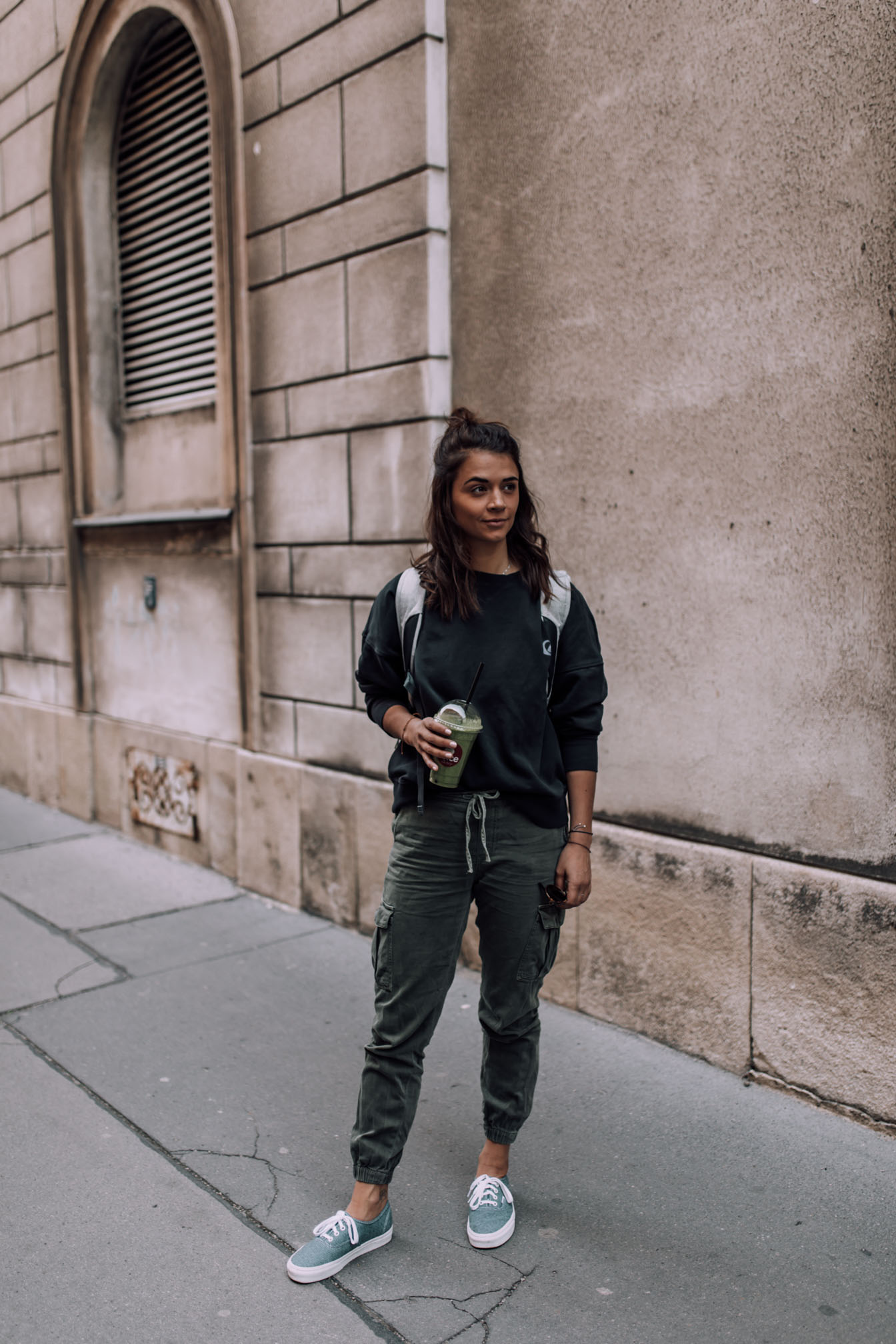 Zurück in der Großstadt ist so einiges zu tun, vor allem da es für mich in 2 Wochen wieder ans Meer geht und ich eigentlich noch so viel wie möglich vorher erledigen möchte. Deshalb wurde gestern ein Shooting-Tag eingelegt und einiges vorbereitet. An Tagen an denen ich sehr viel unterwegs bin, muss mein Look vor allem eines seines, bequem. Locker sitzende Hosen, ein gemütlicher Sweater und alle wichtigen Sachen am Rücken im Rucksack verstaut. Diesen Look habe ich erst am Wochenende genau so getragen und da er mir so gut gefiel und ich bin absolut wohl in den Teilen fühle, musste er gleich nochmal genau so ausgeführt werden. Momentan sind die Temperaturen in Wien ja absolut wahnsinn und man kann an manchen Tagen sogar schon ganz ohne Jacke das Haus verlassen - I Like.