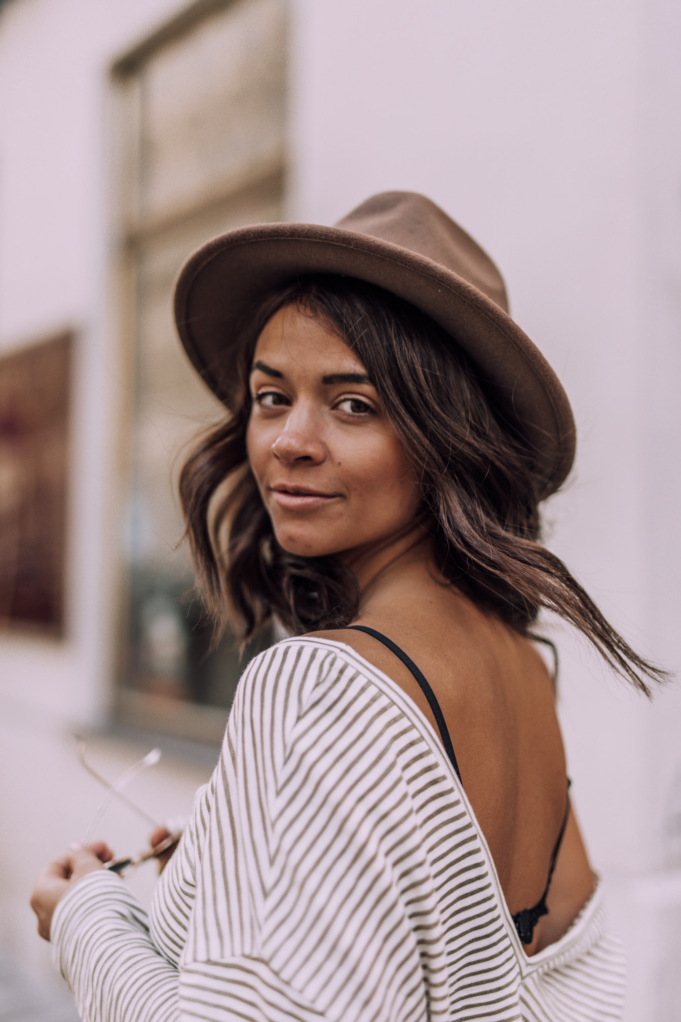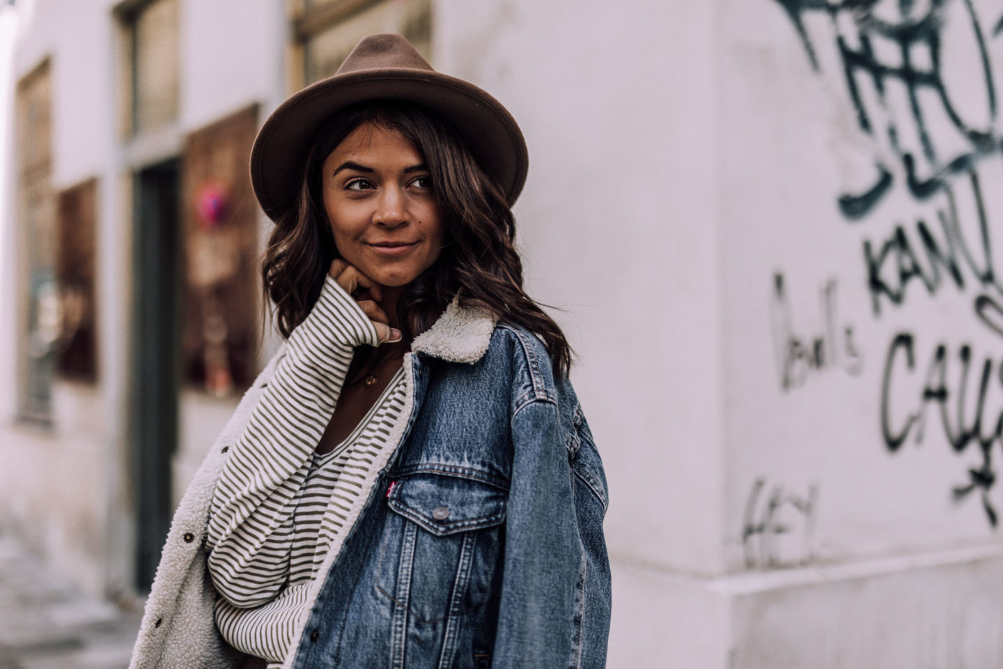 Doch nun lieber zu diesem Look bevor ich noch weiter ausschweife, denn das kann ich momentan nämlich sehr gut. Ich bin ein großer Fan von Kopfbedeckungen jeglicher Art. Kappen, Mützen und auch Hüte gehören da ganz klar dazu. Auch wenn ich mittlerweile immer zweimal überlege ob ich wirklich einen Hut aufsetzen soll. Seit jemand (*hust* danke Oli) zu mir gesagt hat ich sehe aus wie Indianer Jones, fühle ich mich irgendwie verkleidet, wenn ich damit durch die Stadt laufe. Doch wenn ich dann diese Fotos sehe, denk ich mir wieder ach egal ich mag den Indiana Jones Look. Der Hut sieht einfach cool aus, verleiht dem Outfit einfach das gewisse etwas und ich fühl mich wohl damit. Ja und das ist das wichtigste, also Indiana Nina Jones is back.
