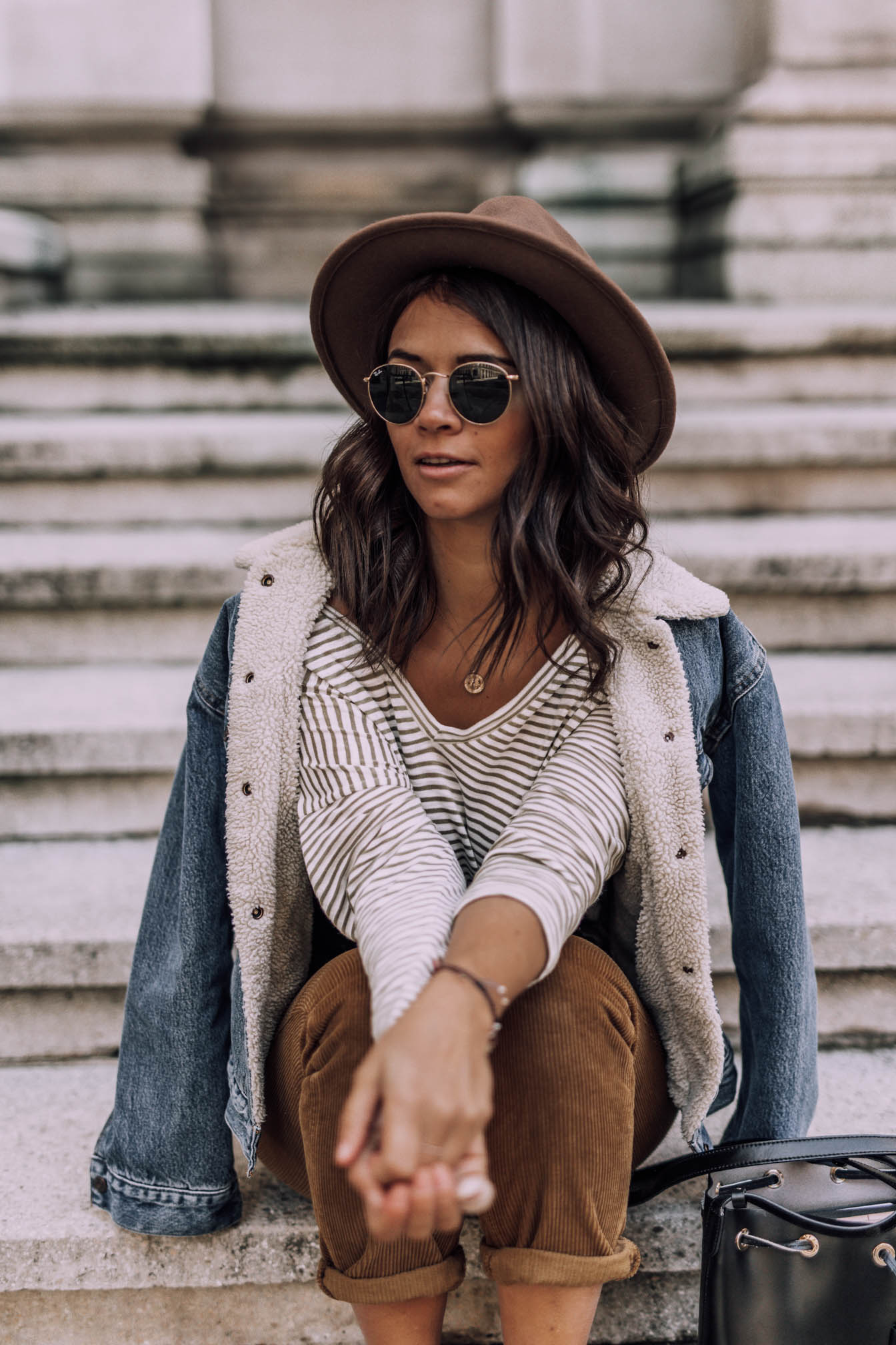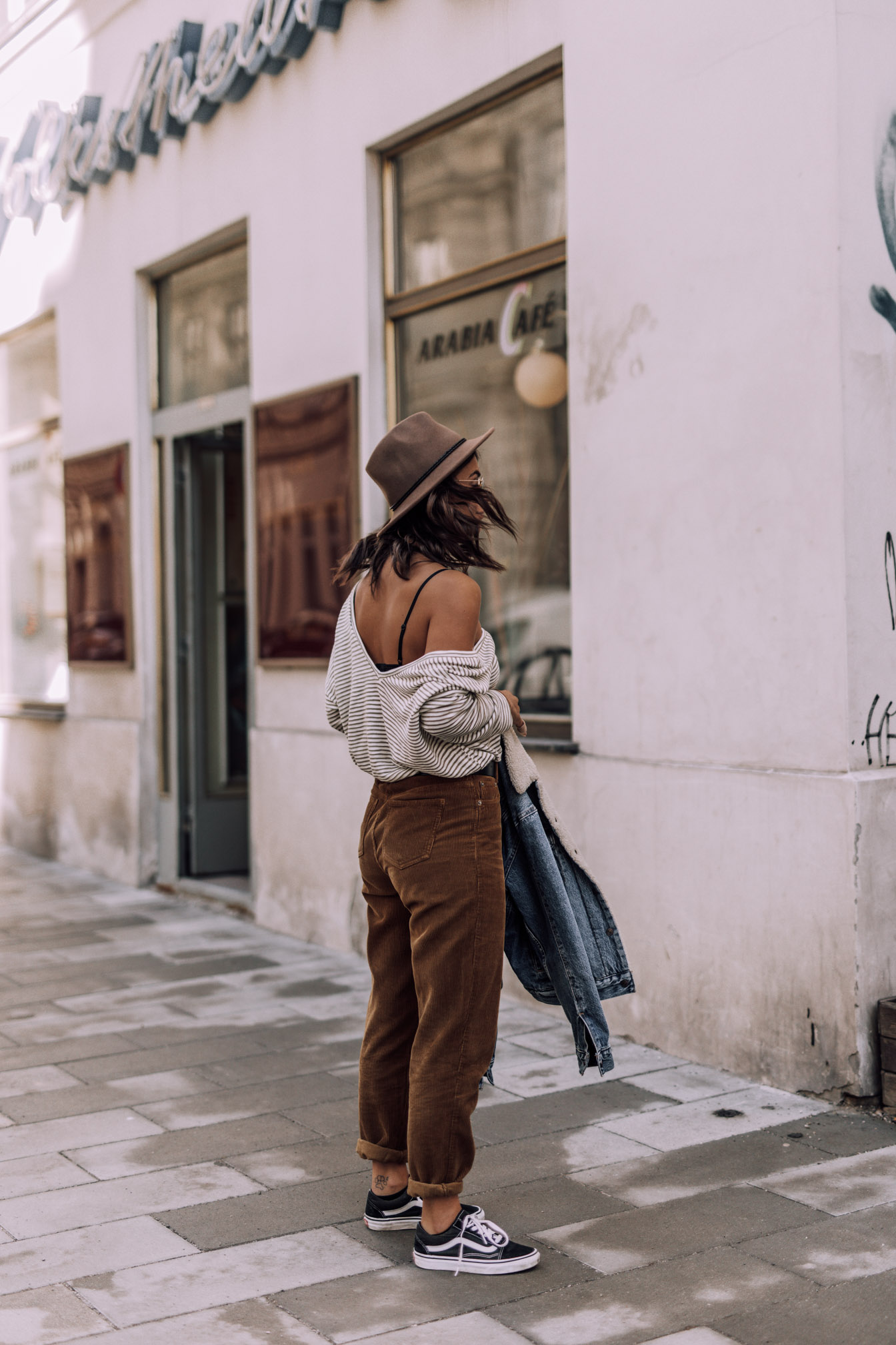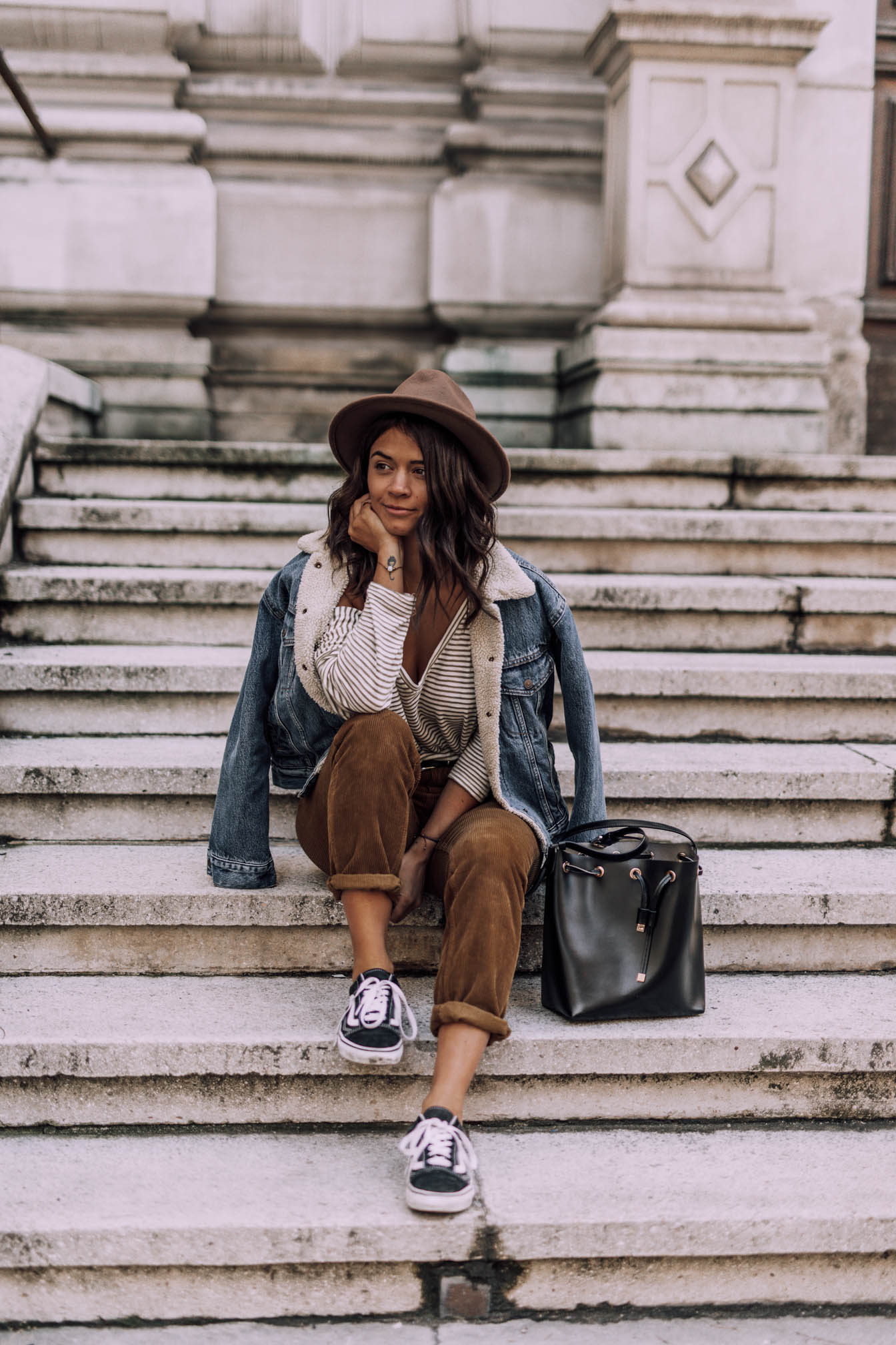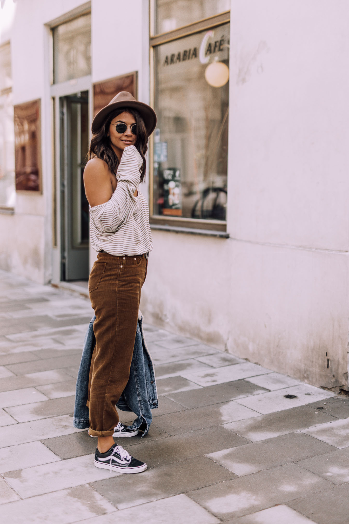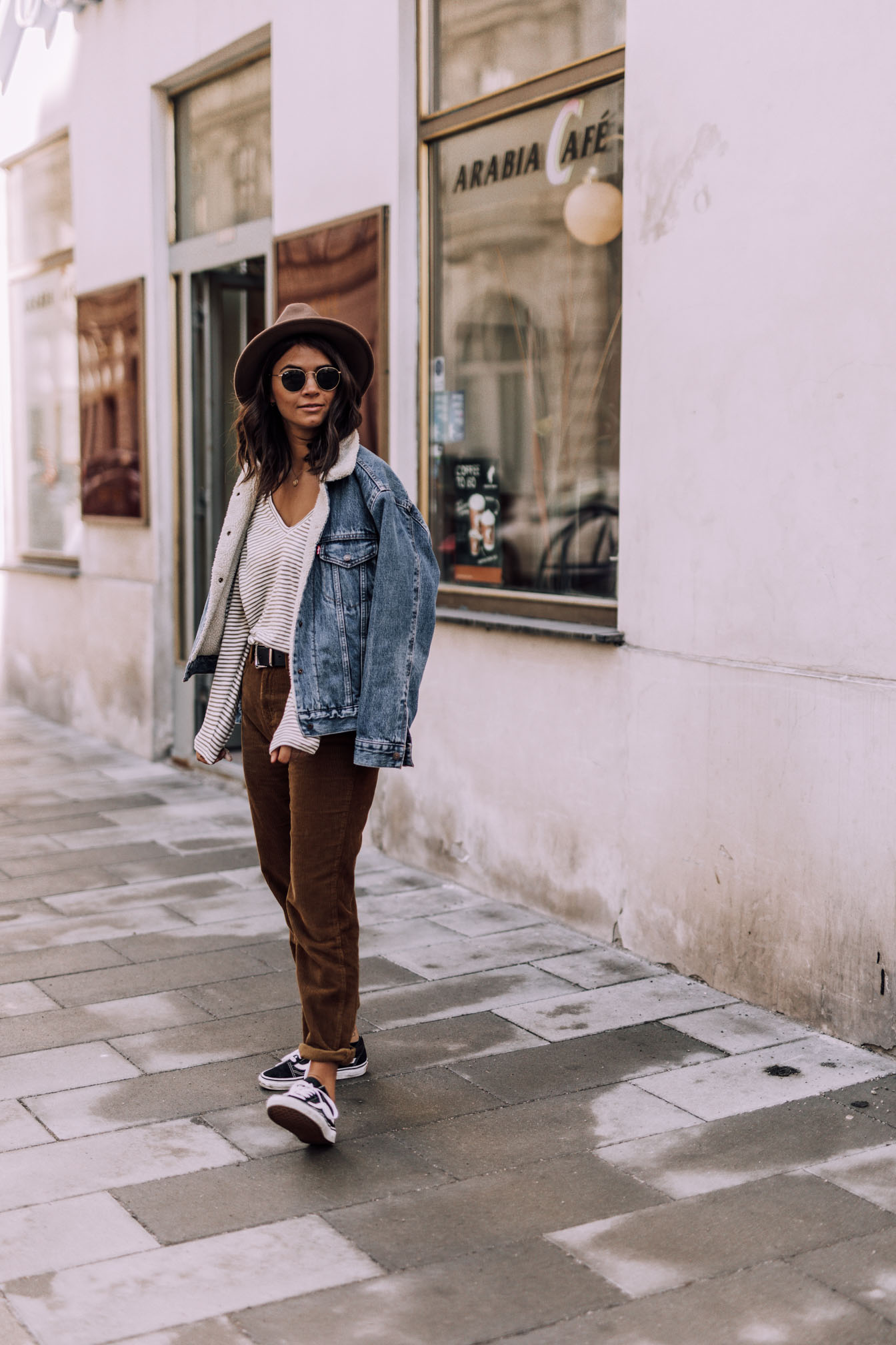 Hut - Noname (sehr ähnlicher HIER)|| Hose - Asos (ähnliche HIER) || Oberteil- Asos (ähnliches HIER) || Jeansjacke - Levis (ähnliche HIER) || Schuhe - Vans || Sonnenbrille - Rayban || Tasche - Coccinelle (ähnliche HIER)|| Gürtel - Asos || Kette - &OtherStories