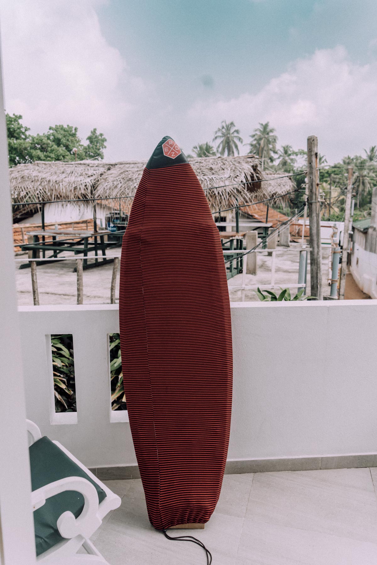 Vor Ort waren wir dann eigentlich immer mit dem Tuk Tuk unterwegs und die haben uns auch mit Surfboard ohne Probleme mitgenommen. Zur Sicherheit hatten wir noch Spanngurte dabei, wobei ganz viele Fahrer sowieso welche hatten. Ja und wenn wir dann alleine zum Strand sind, habe ich mir das Brett einfach unter den Arm geklemmt und dann ging es auch schon los und die Spots wurden gecheckt. Leider gibt es auf Sri Lanka noch nicht wirklich Mopeds mit Surfrags, was ein bisschen mühsam ist, aber wie sagt man so schön Not macht erfinderisch.