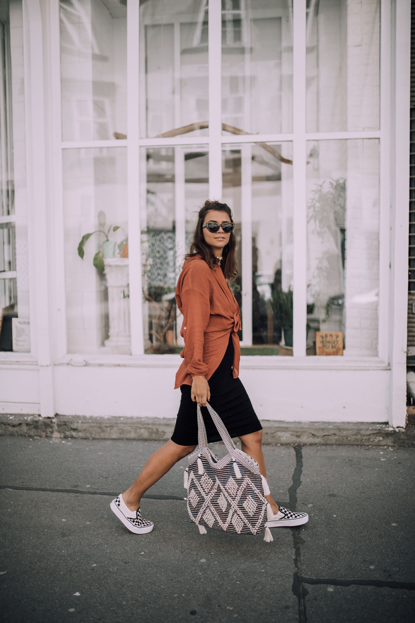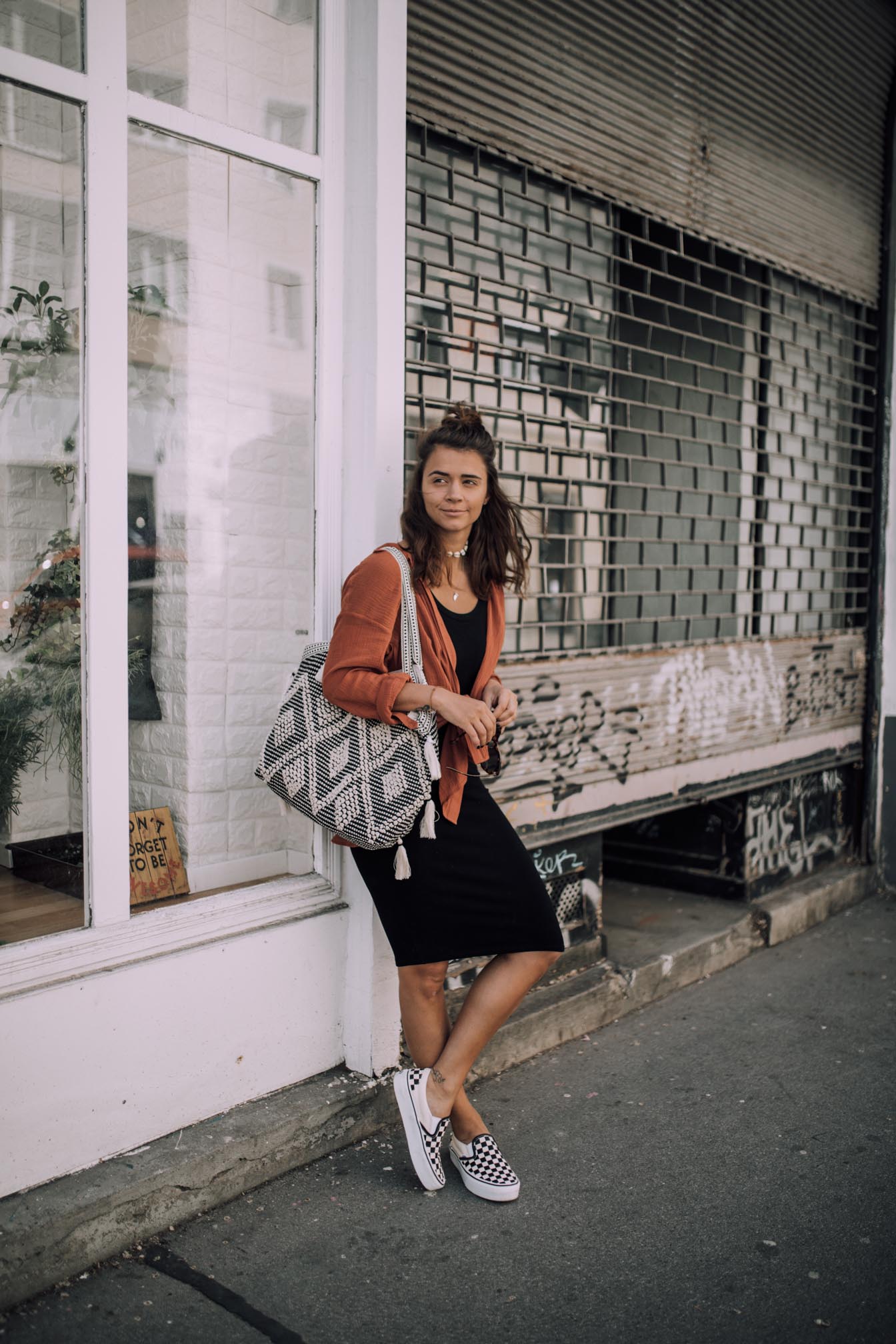 Kleid - Pull & Bear (ähnliches HIER) || Bluse - Seafolly Australia (ähnliche HIER) || Jeansjacke - Mustang Second Hand (ähnliche HIER)|| Tasche - H&M || Sneakers - Vans || Sonnenbrille - NoName (ähnliche HIER) || Kette - No Name aus Sri Lanka (ähnliche HIER)