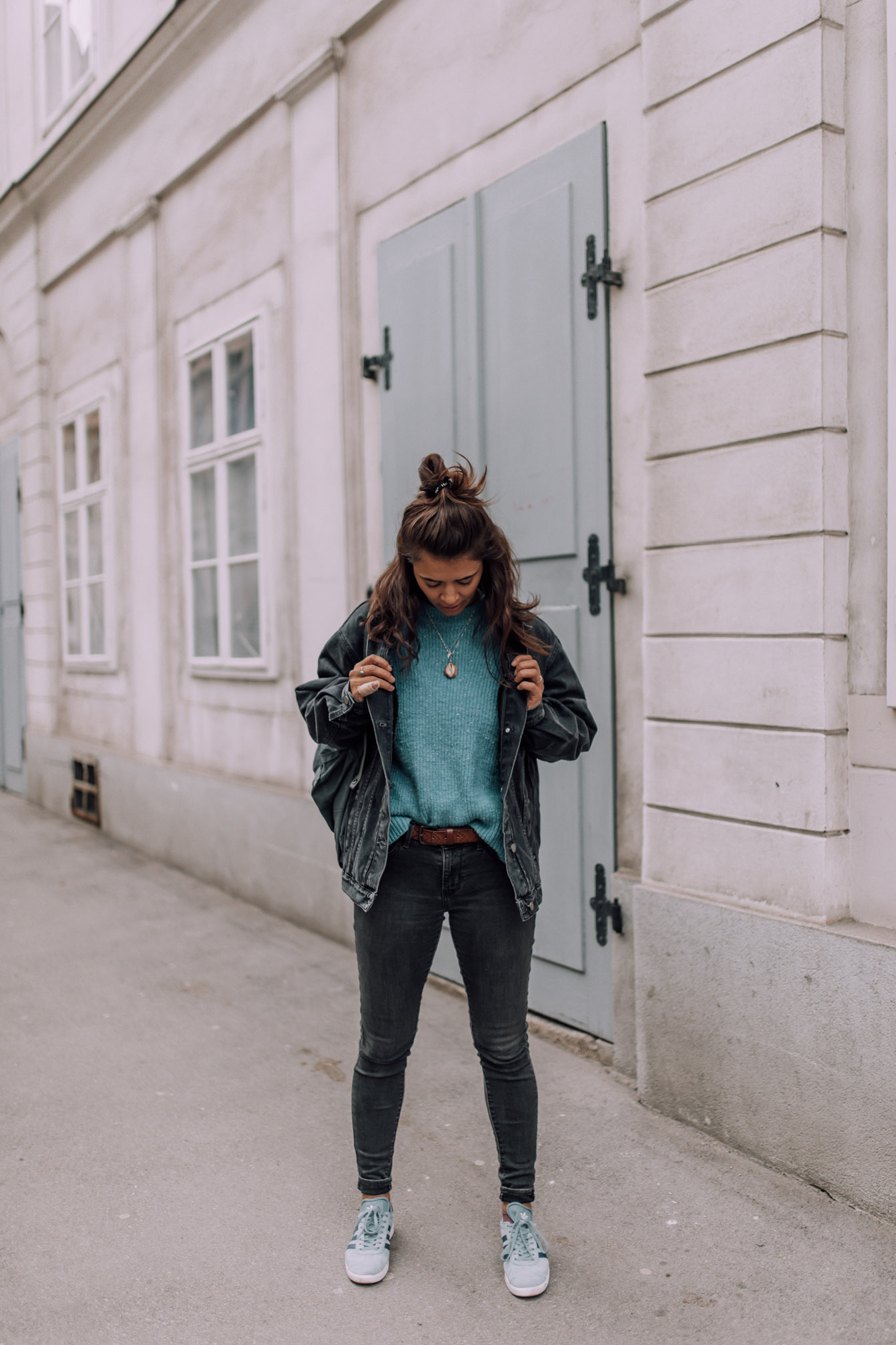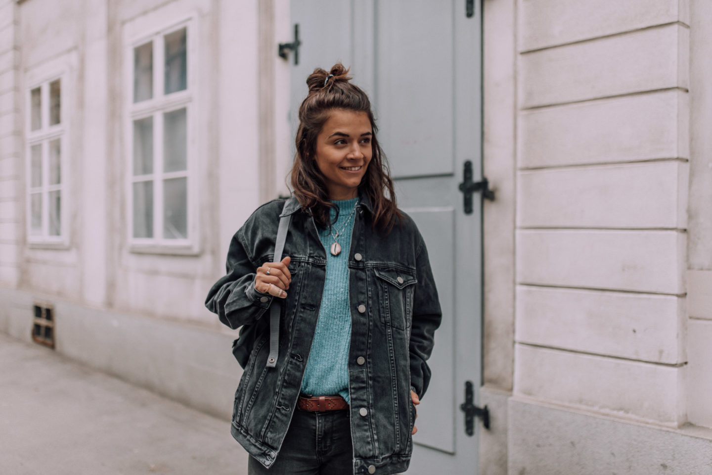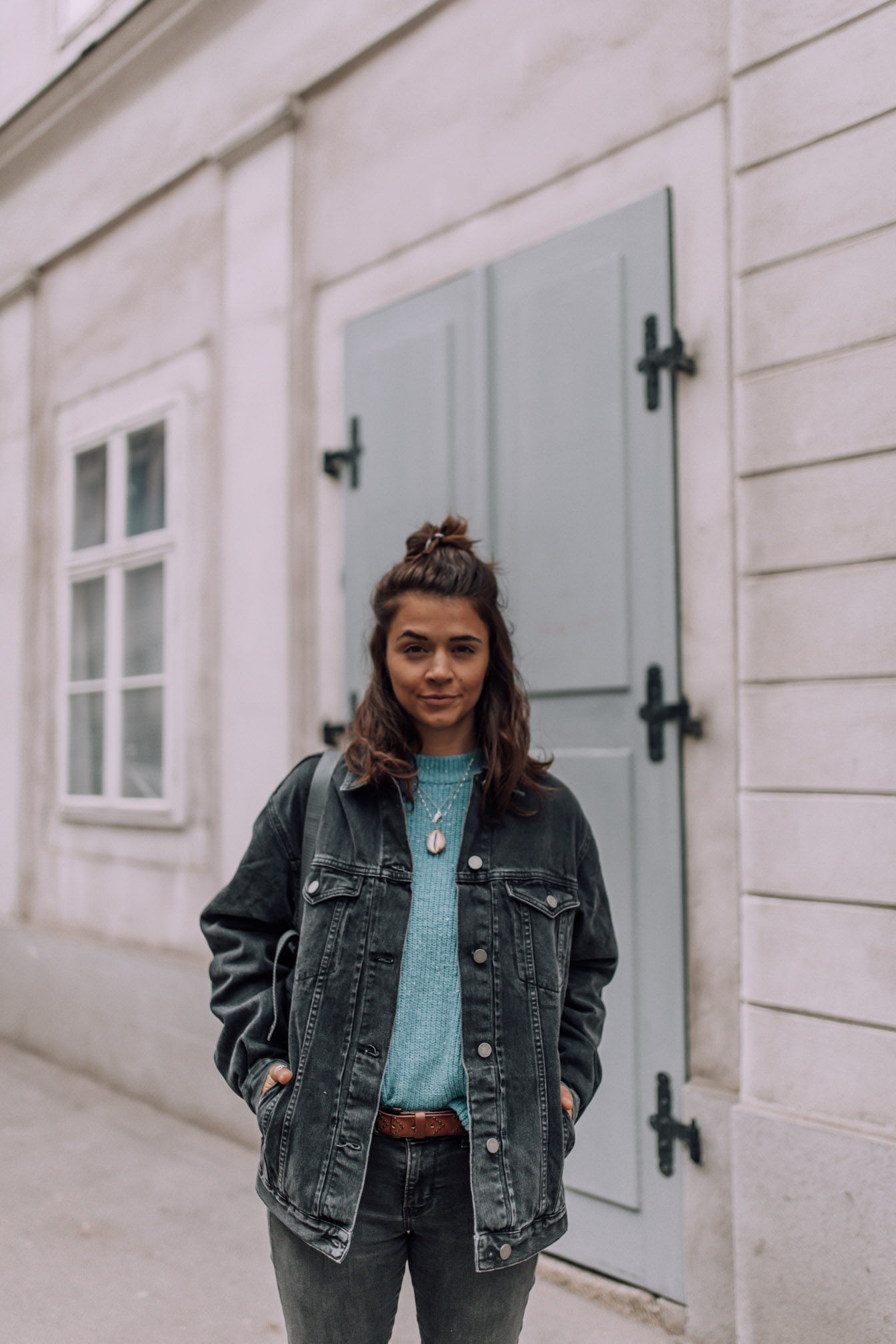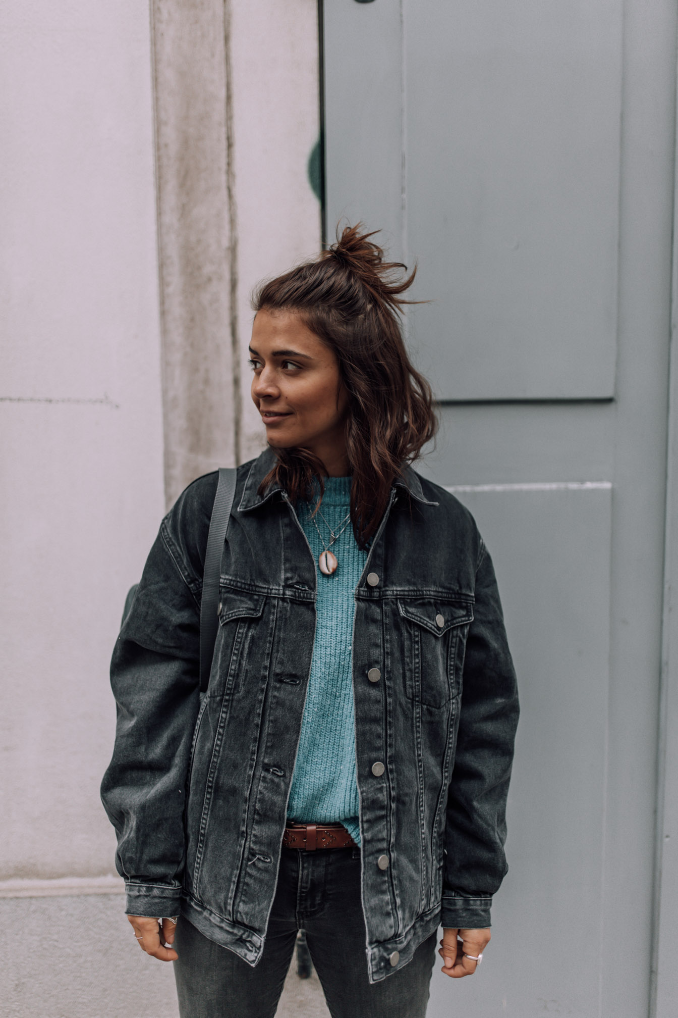 Passend zum momentanen Wetter gibt es ein Outfit ganz in Grau gehalten - Eine Farbe die meinen Kleiderschrank schon ziemlich lange dominiert. Wenn ich mal wieder keine Lust habe mir großartig zu überlegen was ich anziehen soll und einfach zum Kleiderschrank gehe, endet es meistens grau in grau. Eine Kombination die ich unheimlich gerne habe. Trotzdem versuche ich immer ein bisschen Farbe zu integrieren und was passt da besser als meine Lieblingsfarbe blau. Die übergroße Jeansjacke von Asos ist übrigens mein absolutes Lieblingsteil momentan und wirklich andauernd im Einsatz. Sogar mein Freund hat schon öfters ein Auge darauf geworfen und sie das eine oder andere Mal ausgeliehen. Eine wirklich coole Jacke, die einfach überall dazu passt und somit einen fixen Bestandteil in meiner Garderobe verdient hat.