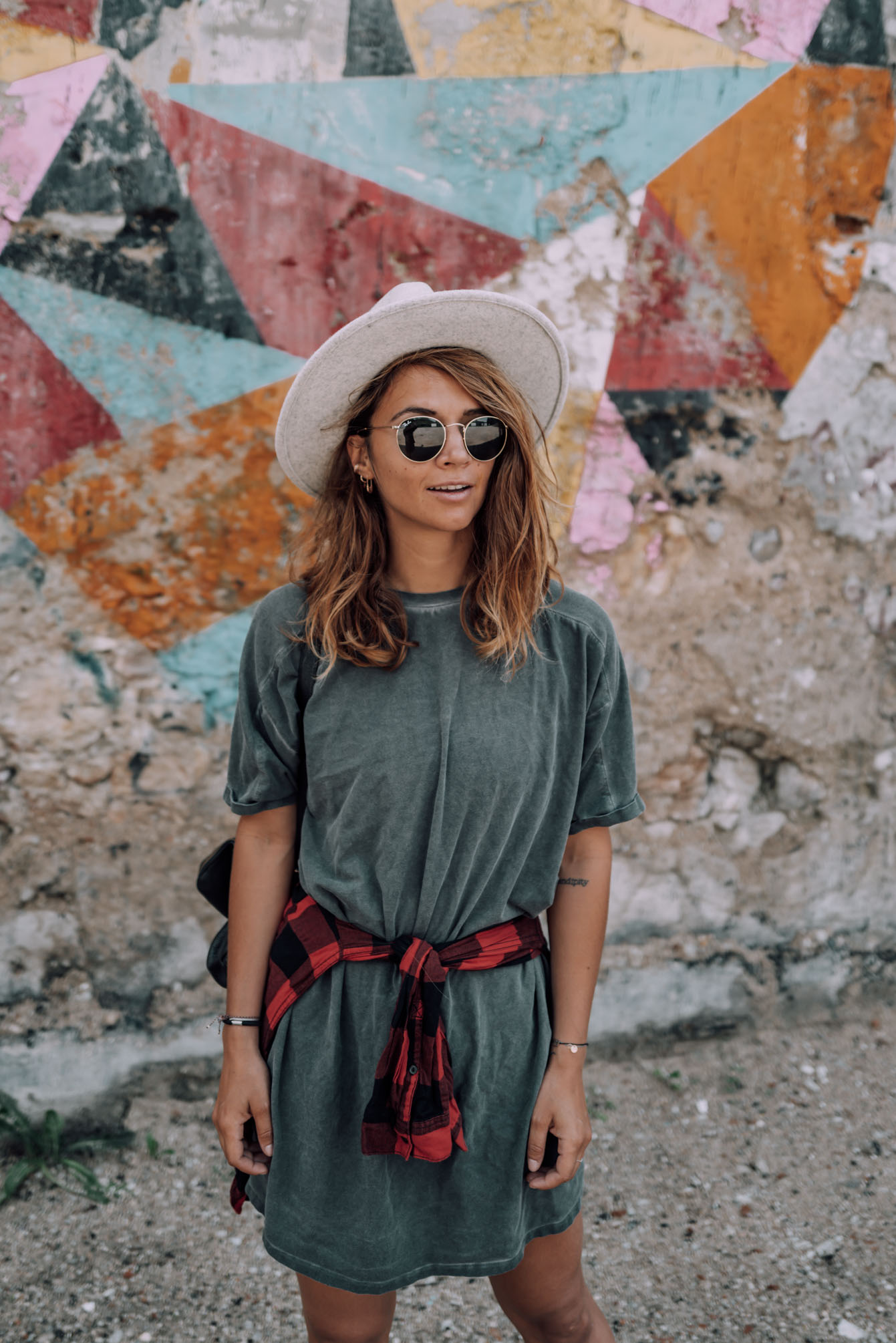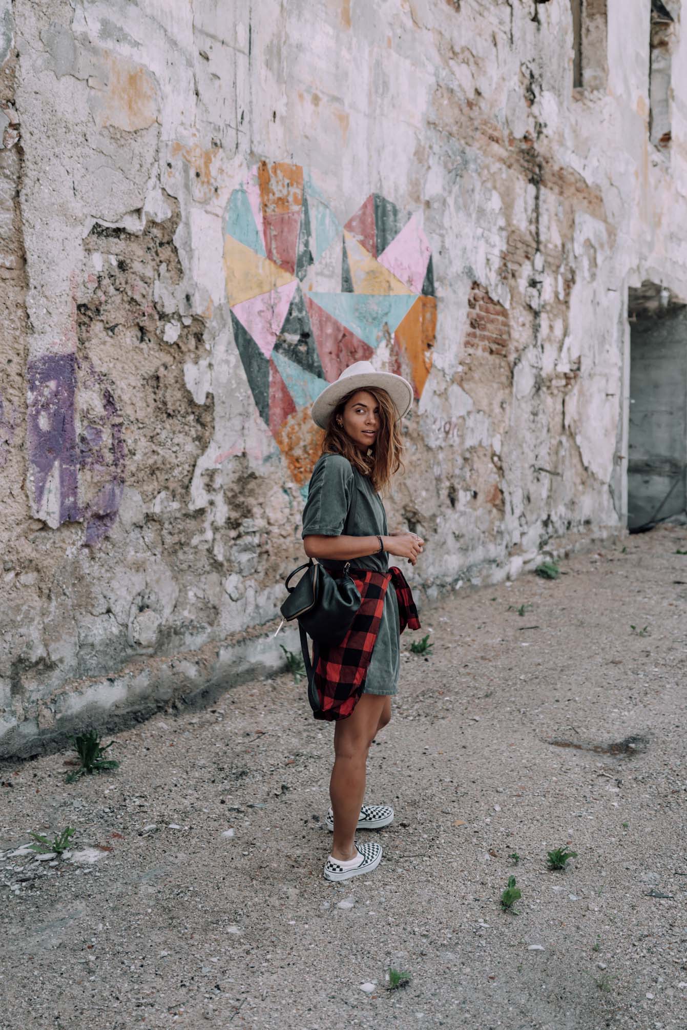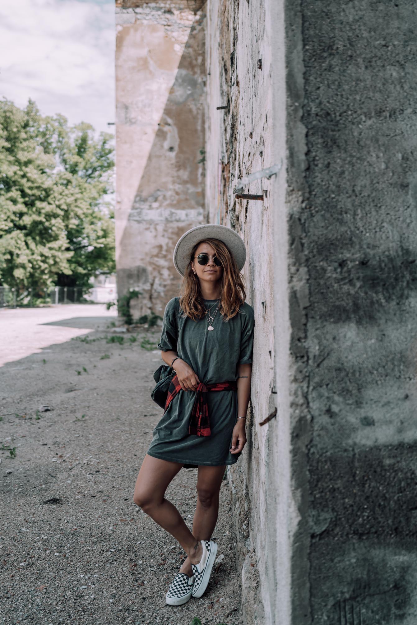 Shirtkleid - Asos (ähnliches HIER) || Hemd - H&M (alt, ähnliches hier) || Hut - Lack of color || Schuhe - Vans || Rucksack - Whistles (ähnliche HIER) || Sonnenbrille - Rayban