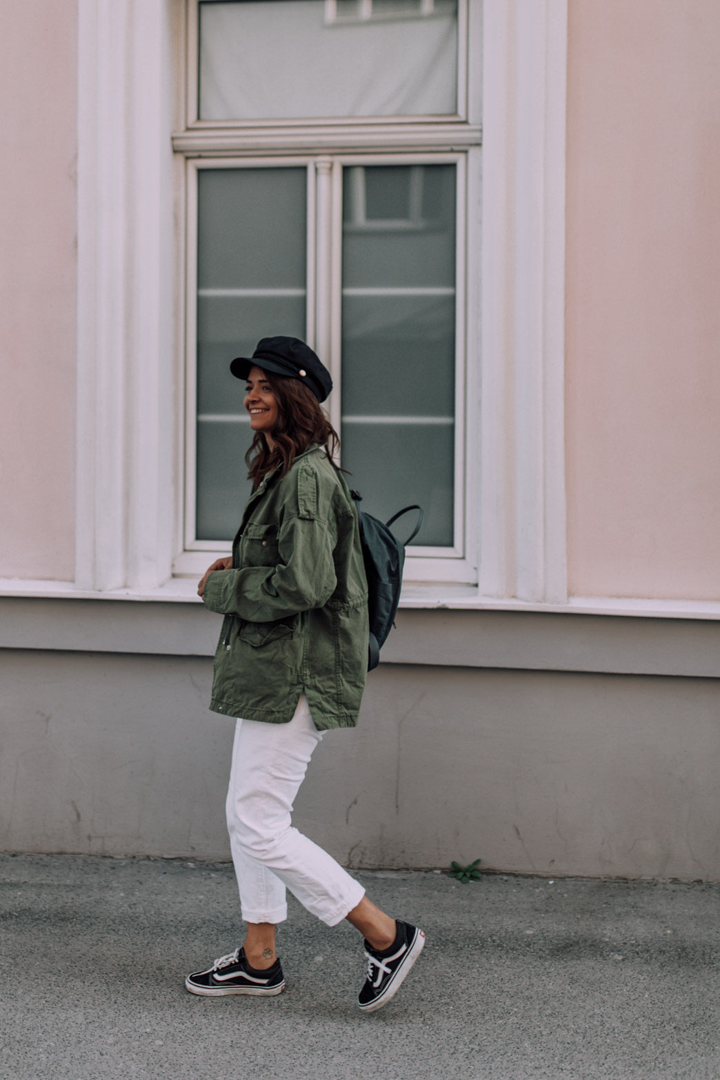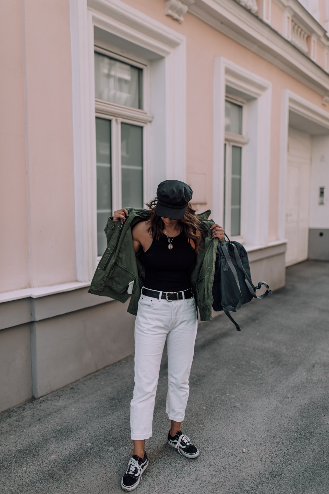 Jeans -Levis (ähnliche HIER)|| Shirt - Asos || Jacke - Mango (alt, ähnliche HIER) || Kappe - H&M (ähnliche HIER) || Rucksack - Fjallraven Kanken || Gürtel - Asos || Schuhe - Vans || Sonnenbrille - Ray Ban