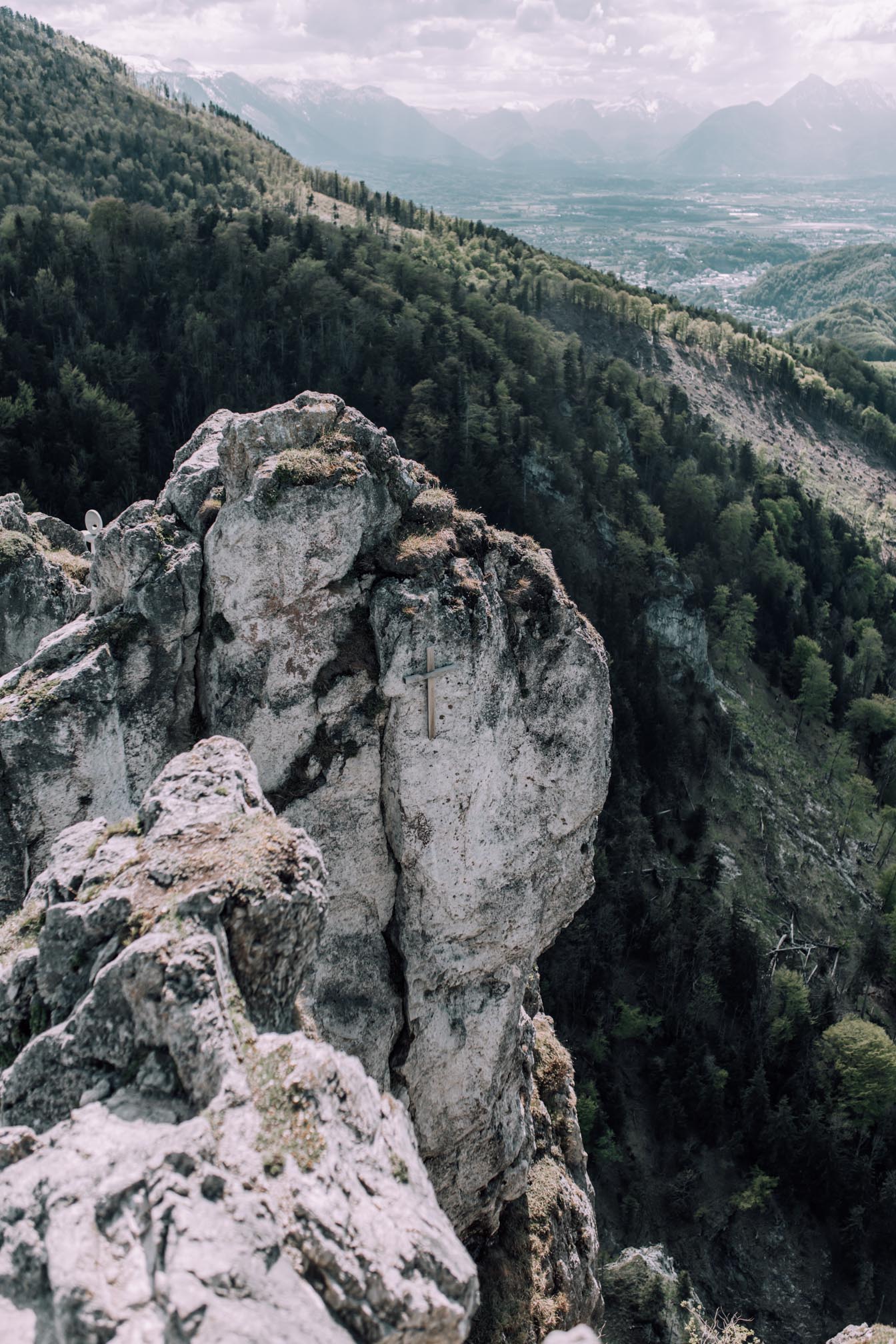 Der Ausgang der Wanderung ist beim Gasthof Riedl. Gleich danach befindet sich ein öffentlicher Parkplatz wo man ohne Probleme stehen bleiben kann. Achtung am Wochenende kann es hier auch schon mal schnell voll werden. Die Wanderung ist sehr gut beschildert, man kann sich hier also eigentlich nicht wirklich verlaufen. Ab dem Parkplatz geht es links in den Wald, das erste Stück ist zwar ein bisschen steiler aber doch sehr gemütlich und auch dieser Weg ist mit Kindern und Hund sehr gut machbar. Man geht die meiste Zeit eigentlich durch den Wald. Trotzdem ist die Route sehr abwechslungsreich und wirklich schön zu gehen. Man geht kurz auch ein kleines Stück wieder bergab und dann wieder bergauf bis man den Wald verlässt und das erste Mal einen schönen Blick auf Salzburg hat. Hier geht es dann rechts ein kurzer Stück ein bisschen anspruchsvoller weiter. Man kann hier entweder gerade über die Felsen zum Gipfel klettern, oder man folgt dem Weg rechts zum Gipfel. Zweiterer dauert ein paar Minuten länger ist aber auf jeden Fall der einfachere Weg. Nach ca. 45 Minuten hat man das Gipfelkreuz erreicht und kann einen schönen Blick über die Stadt, den Gaisberg und die Umgebung genießen. Wer übrigens nach dieser kurzen Wanderung noch nicht genug hat, kann auch noch auf den Gaisberg weitergehen- steht bei mir auch noch auf der Liste.
