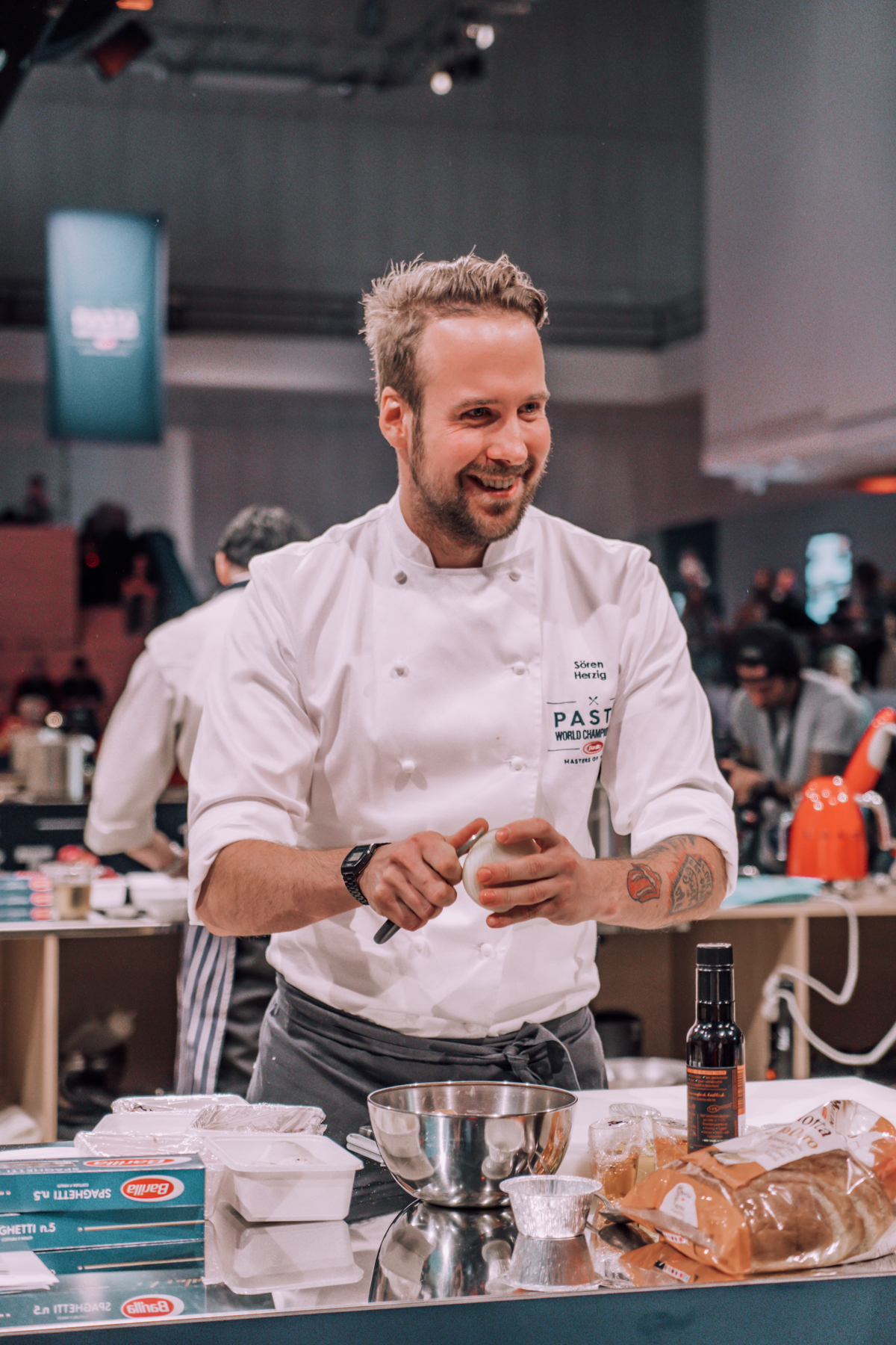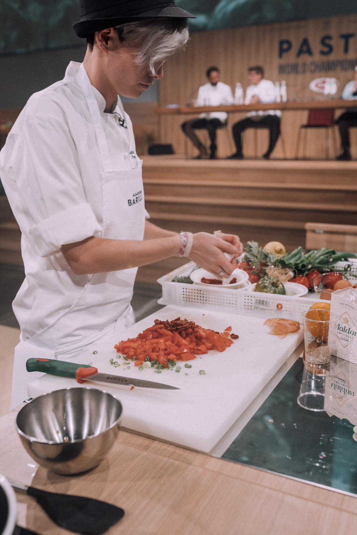Vergangene Woche war ich gemeinsam mit Barilla für die Pasta Weltmeisterschaften in Mailand und habe in diesen zwei Tagen nicht nur Pasta gegessen, nein. Während dem Wettbewerb konnte ich den 17 teilnehmenden Köchen aus aller Welt auch über die Schulter schauen und so habe ich für mich persönlich sogar ein paar sehr nützliche Tipps mitgenommen. Es war wirklich unheimlich spannend so nahe am Geschehen dabei zu sein und zu sehen wie die Kochlöffel geschwungen wurden. Immer 2 Köche sind gegeneinander angetreten und haben ihr Bestes gegeben. Am ersten Tag durften die Teilnehmer ganz nach dem Motto “Eat Positive!” ihre eigenen Pasta Gerichte präsentieren und ihrer Kreativität freien lauf lassen. Am zweiten Tag gab es dann unterschiedliche Aufgaben, die von einer Jury vorgegeben wurden zu meistern. Sogar Österreich war vertreten und auch wenn der liebe Sören den Titel nicht nachhause geholt hat, hat er sich gut geschlagen und leckere Carbonara gezaubert. Im Finale standen zum Schluss die USA und China und die letzte Aufgabe lautete, Spaghetti Pomodoro. Ein echter Klassiker halt. Die sympathische Amerikanerin Carolina Diaz konnte die Jury mit ihrer Kochkunst überzeugen und durfte sich schlussendlich über den Titel Pasta Weltmeisterin freuen.
