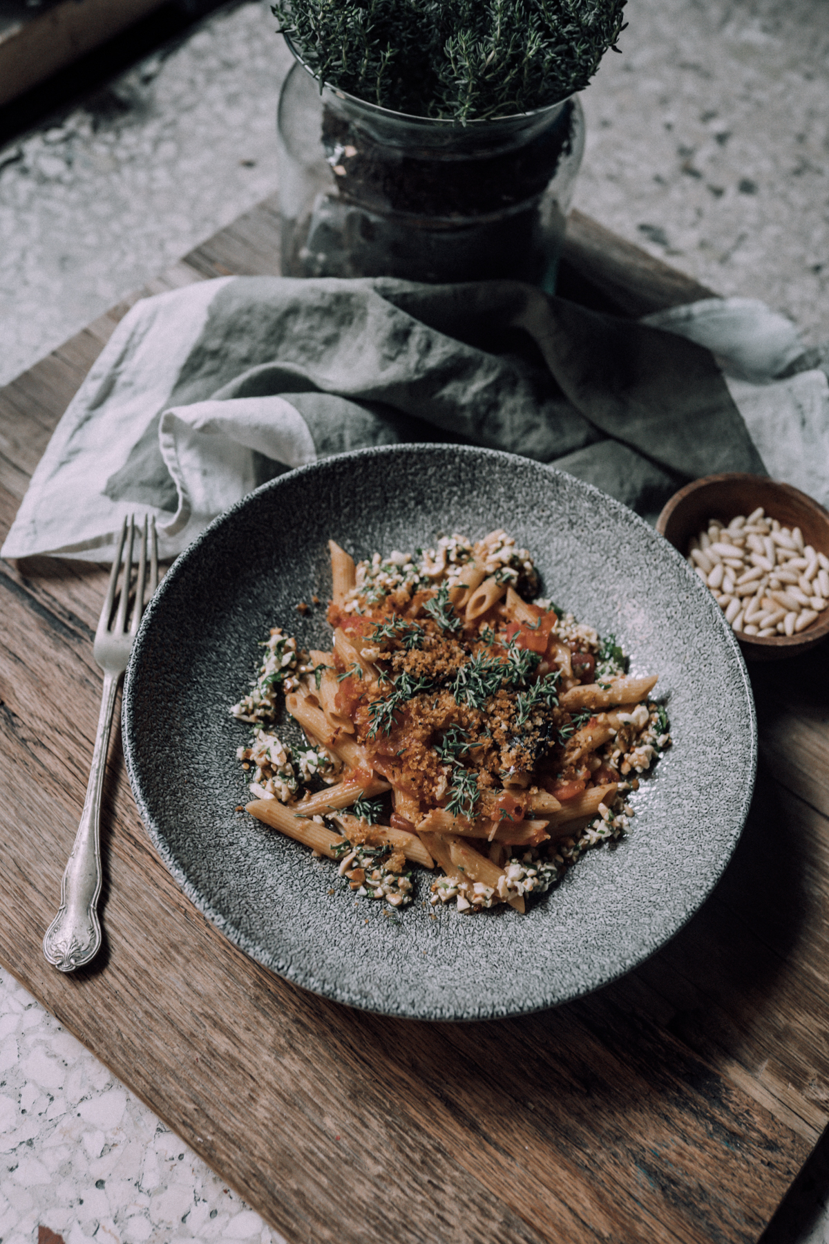 - In der Zwischenzeit einen Topf mit Wasser und Salz für die Nudeln zum kochen bringen. Wusstet ihr, dass man kein Öl ins Wasser geben soll, denn Nudeln nehmen sehr schnell Aromen auf und deshalb ist es besser, die fertigen Nudeln (ohne Öl) einfach gleich in die Sauce zu geben, damit sie den vollen Geschmack davon aufnehmen können.