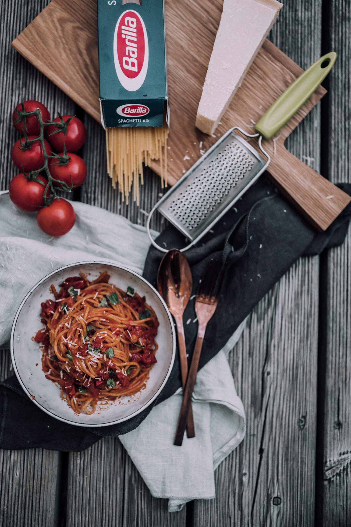 Zurück zuhause in Wien war ich natürlich sofort motiviert und musste mich auch gleich an Spaghetti probieren, was sonst. Ein paar Dinge konnte ich mir sogar abschauen und merken und ich wollte logischerweise wissen, ob ich das auch so hinbekomme wie die Profis. Also habe ich mich wie auch die Finalisten an dem Klassiker Spaghetti Pomodoro versucht. Die teilnehmenden Köche können froh sein, dass ich nicht mitmachen durfte, denn sonst hätte ich sie alle haushoch mit meinem Gericht geschlagen. Ok Ok, das ist vielleicht ein bisschen übertrieben, aber ich muss schon sagen, dass ich wirklich schwer begeistert von meiner Spaghetti Kreation war.