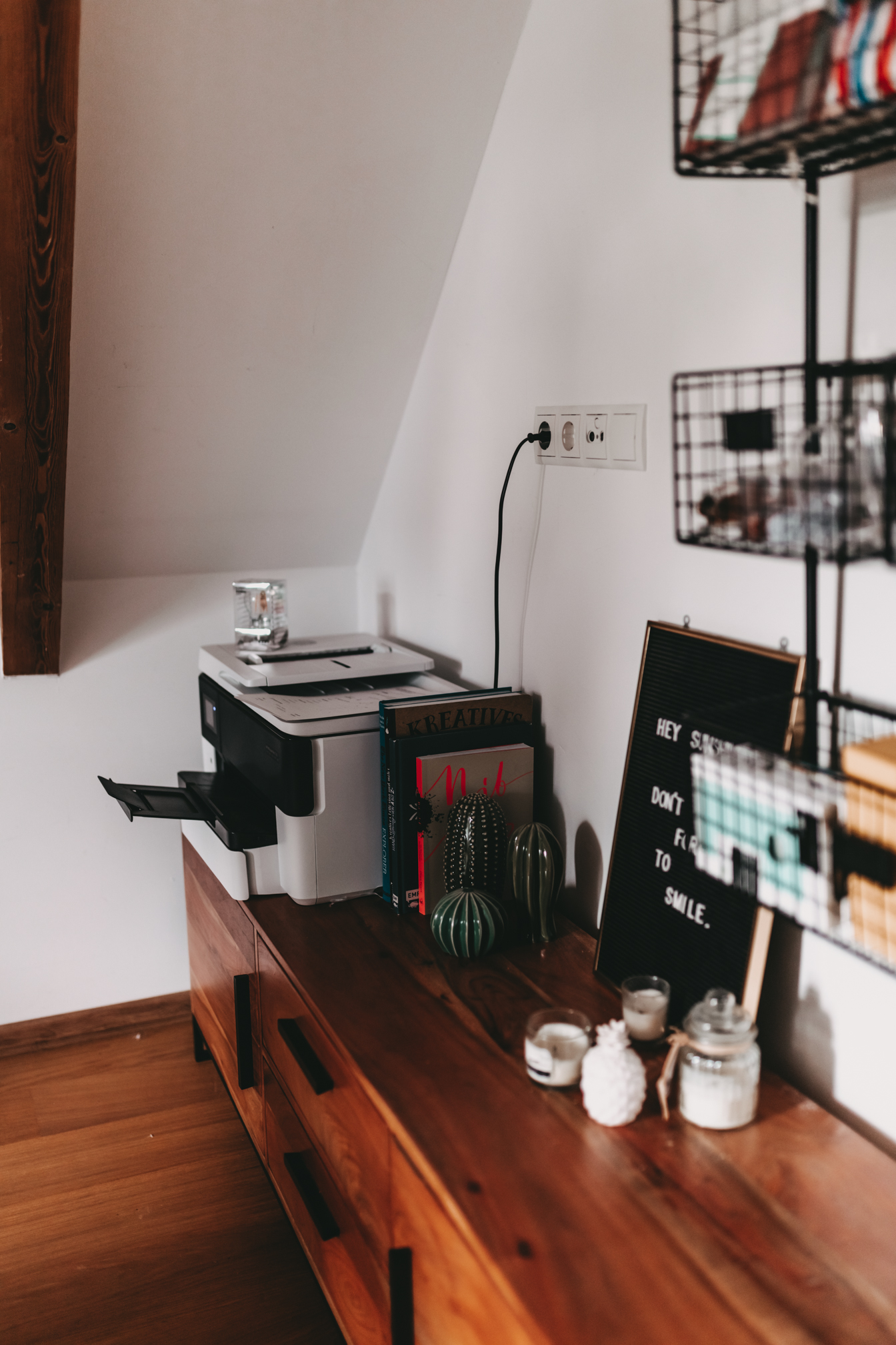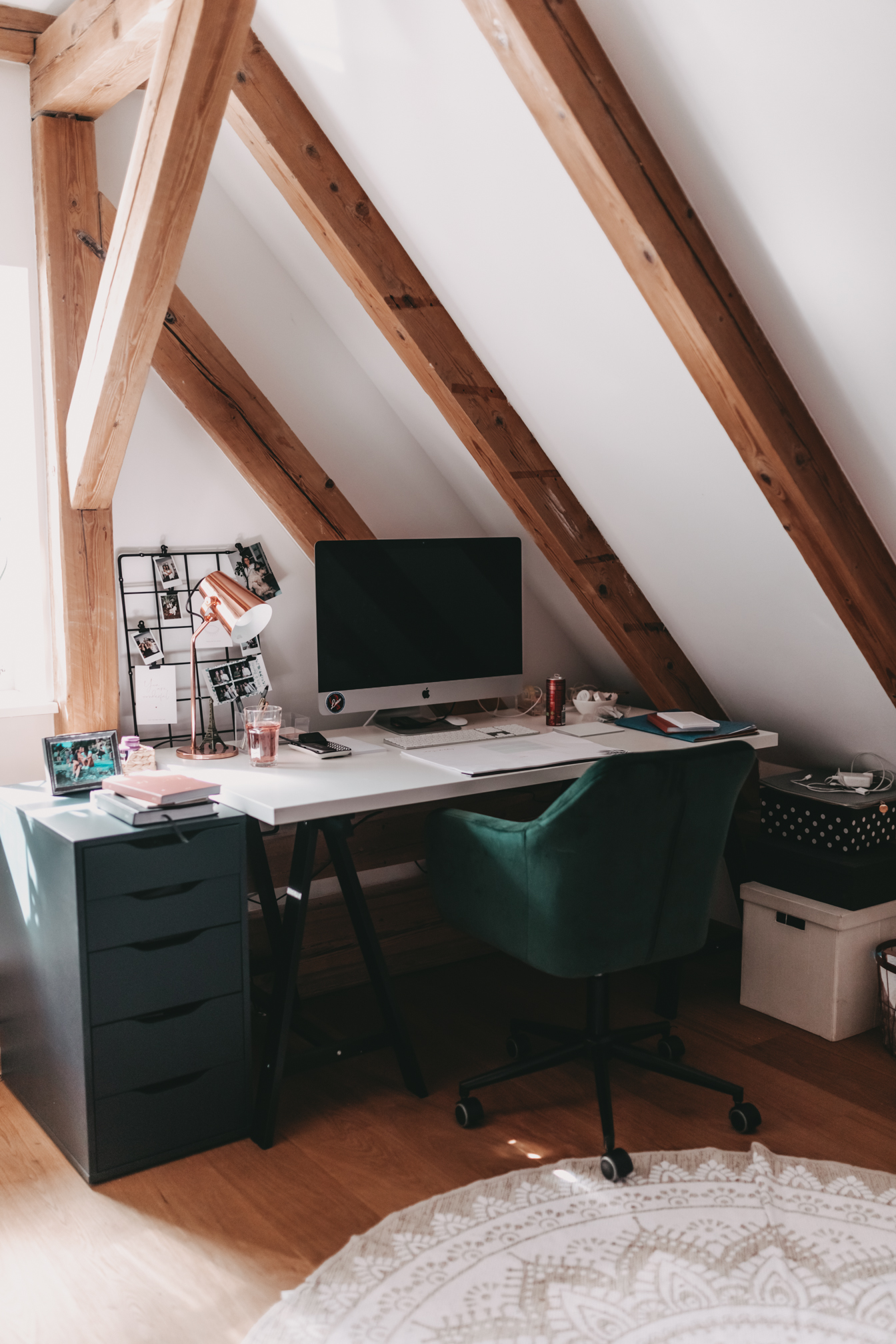Geschichte ist, habe ich mir gedacht ich zeige euch noch schnell wie mein Büro die letzten 8 Monate ausgesehen hat. In Wien hatte ich die letzten Jahre immer ein Büro. Ich wollte Arbeit und Privatleben einfach mehr trennen, denn die ersten Jahre habe ich von meinem alten Wohnzimmer aus gearbeitet und das wurde mir irgendwann einfach zu viel. In der Früh das Haus verlassen und die Arbeit dann auch wirklich im Büro lassen kann sehr befreiend sein und drum war ich immer sehr happy über mein Office. Als ich dann aber im letzten Jahr nach Salzburg gezogen bin, wolle ich mich nicht stressen und neben einer Wohnung auch noch ein Büro suchen. Gott sei Dank habe ich eine Wohnung mit einem Raum mehr gefunden, so konnte ich die ersten Monate mein Büro vorübergehend zuhause einrichten. Die erste Zeit habe ich es sehr genossen am Morgen nicht das Haus verlassen zu müssen und einfach einen Raum weiterzugehen, doch jetzt nach 8 Monaten sehne ich mich wieder nach ein bisschen Abwechslung. Ich möchte Arbeit und Privatleben wieder mehr Trennen. Ja und ich habe bereits Pläne für diesen Raum - Stay Tuned.