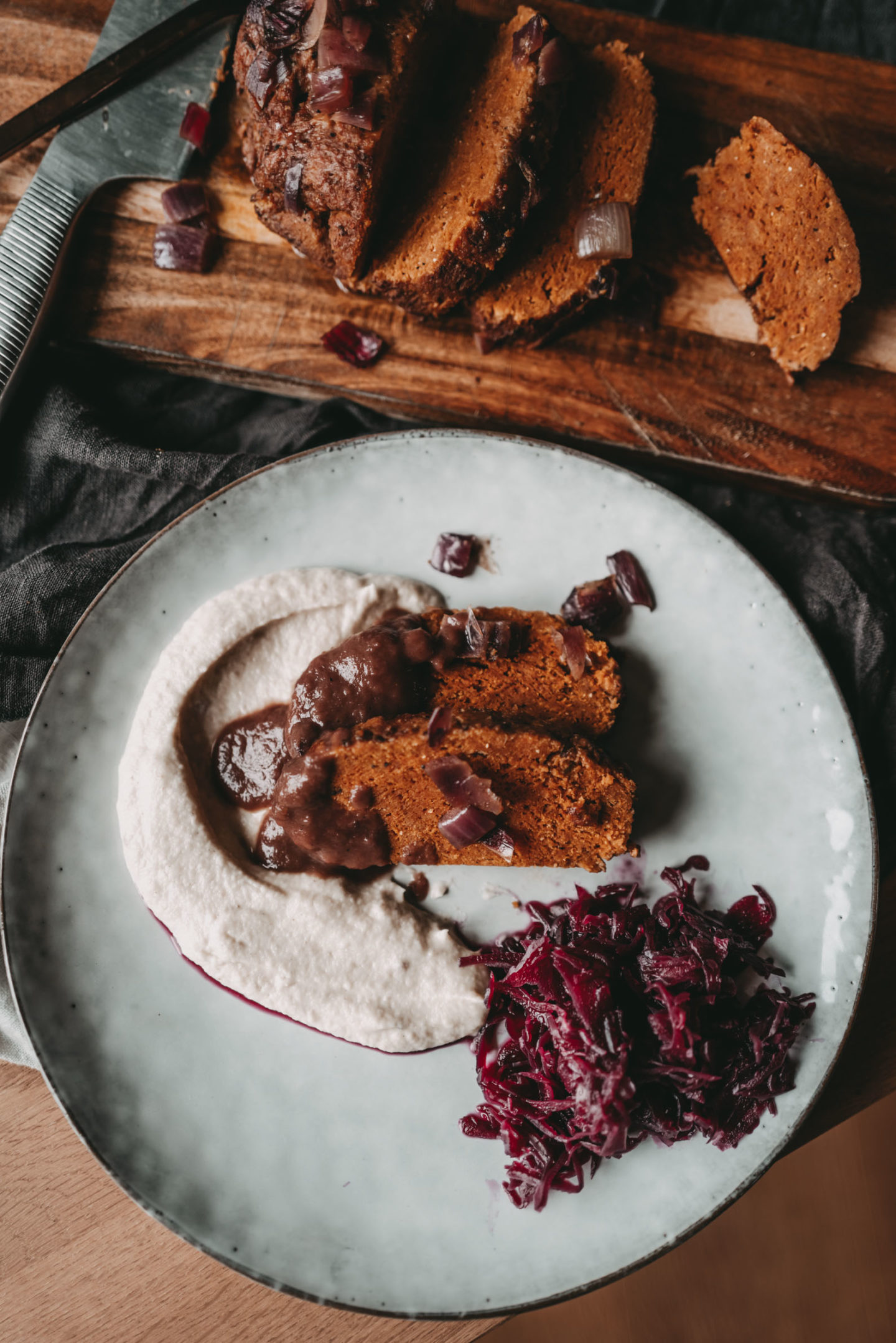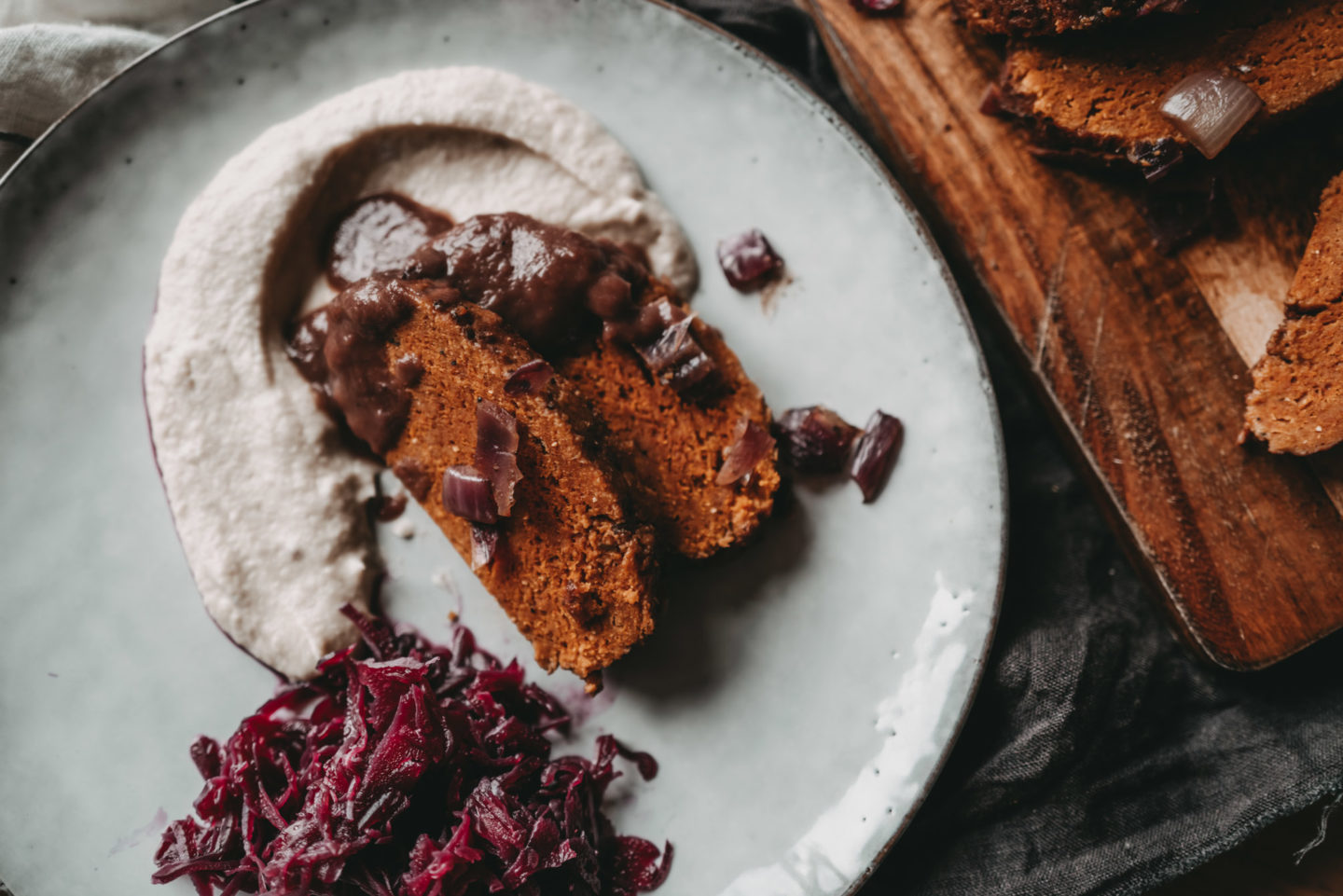 Auf jeden Fall habe ich vor kurzem diesen veganen Braten mit Rotkraut und Püree gezaubert und er ist wirklich super lecker geworden. Als Basis habe ich das Seitan Pulver von Veganz genommen, das ich vor kurzem bei Sabrina gesehen habe. Es macht mir echt großen Spaß vegane Gerichte auszuprobieren und wenn sie dann auch noch gelingen freue ich mich noch mehr. Ja und wisst ihr was das schönste ist, wenn essen richtig gut schmeckt und man weiß, dass kein Tier für mein Essen leider oder sterben musste.